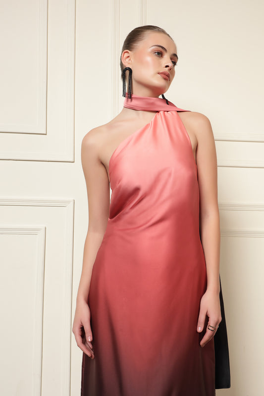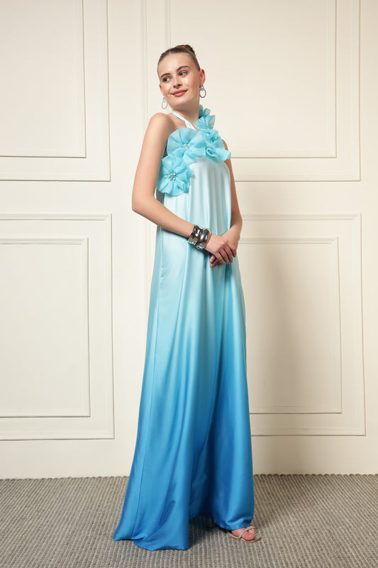 EMBELLISHED HALTER NECK BOX PLEATED DRESS