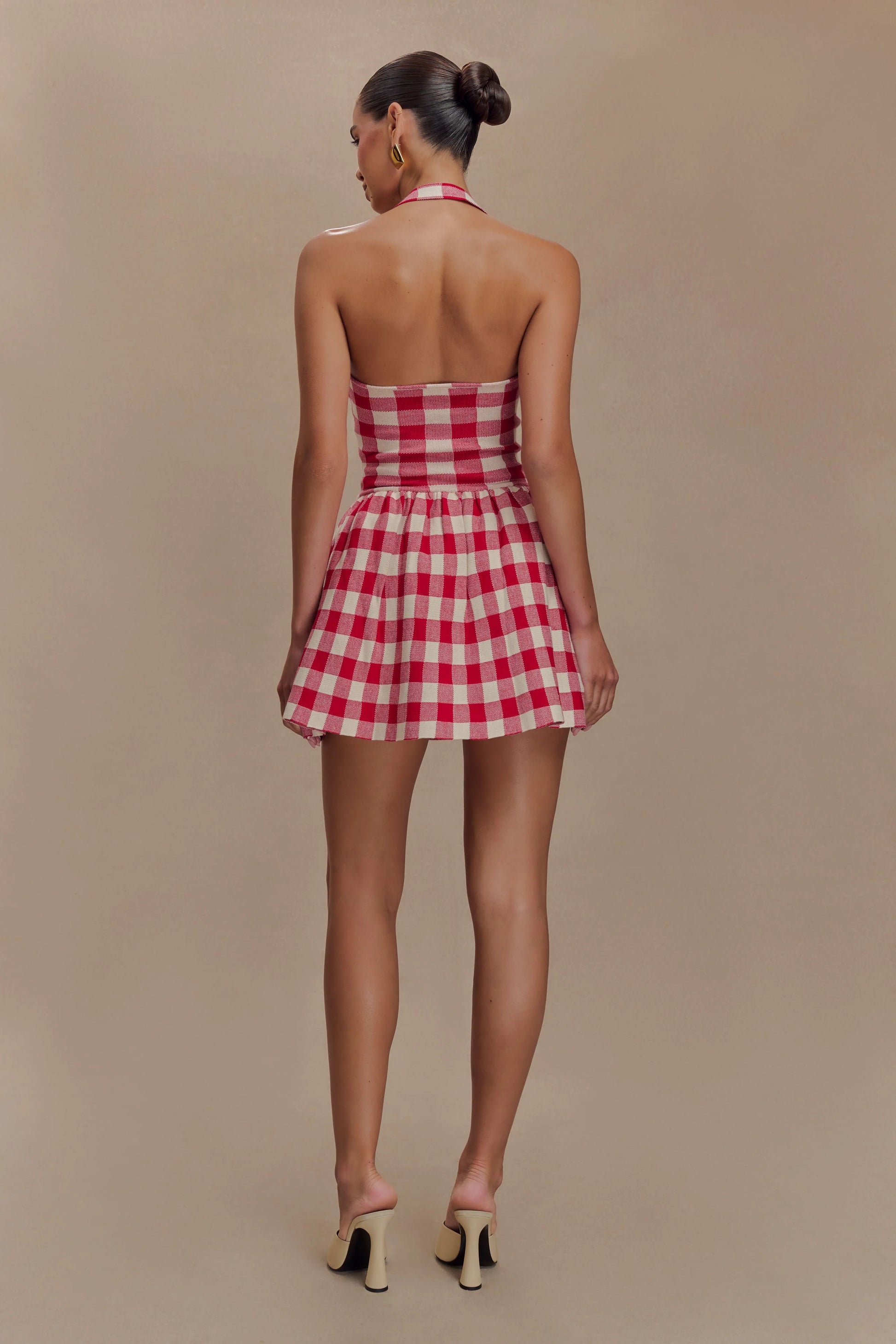 This Dress combines bold structure with delicate details for a chic and playful look. The halter neckline and fitted bodice create a sleek, flattering silhouette.