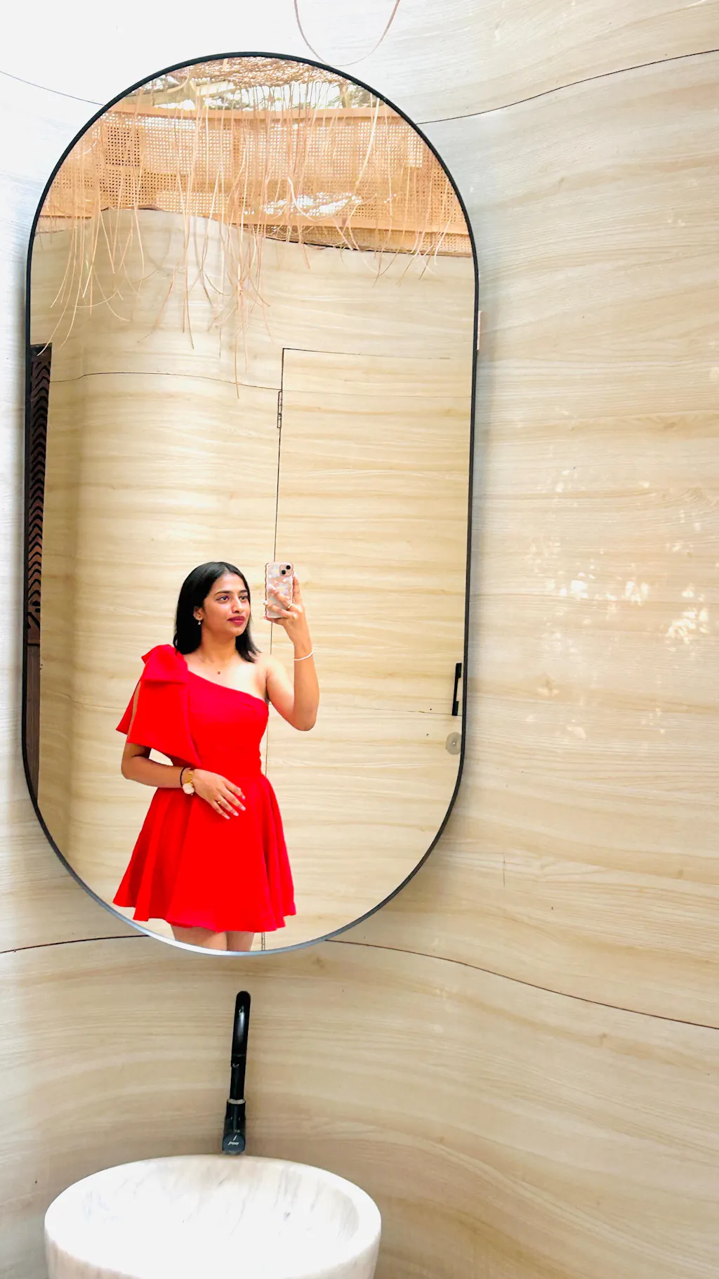 The one-shoulder neckline with the oversized sculpted bow does all the talking, while the structured flared skirt gives you that high-impact silhouette that moves sharply and holds shape. It’s statement, it’s bold, and it instantly looks luxe without trying.